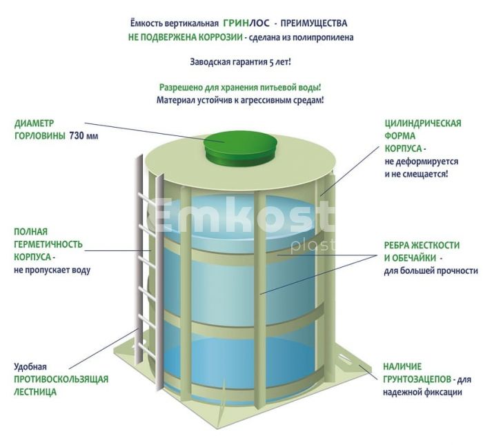 ГРИНЛОС Емкость 11 м3 вертикальная цилиндрическая подземная 2.4х2.4х3.15 полипропилен 379 от 405 100 руб.