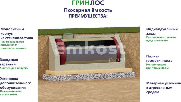 Доставка емкости Гринлос Пожарный резервуар 40-2300 стеклопластиковый