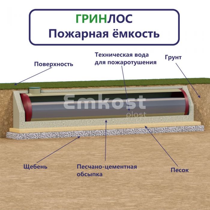 Доставка емкости Гринлос Пожарный резервуар 90-3000 стеклопластиковый