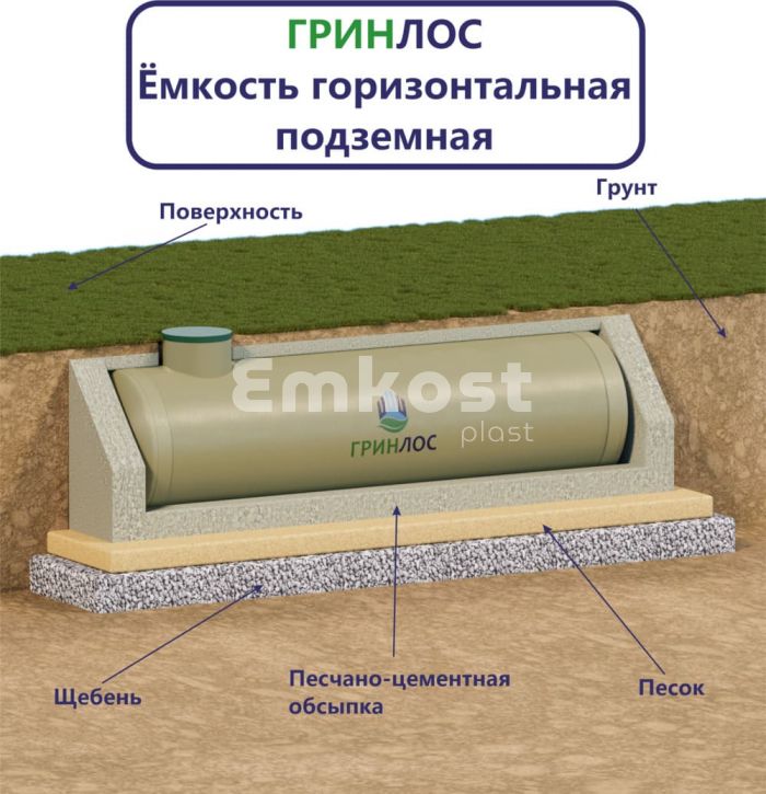 Доставка емкости Гринлос стеклопластиковая 12-2300 горизонтальная подземная