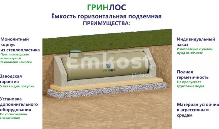 Гринлос Емкость стеклопластиковая 12-2000 горизонтальная подземная 3.7х2х2 стеклопластик 301 от 337 000 руб.