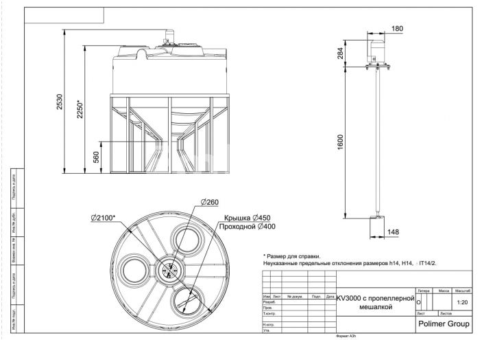 Доставка емкости Polimer Group KV 3000 с пропеллерной мешалкой