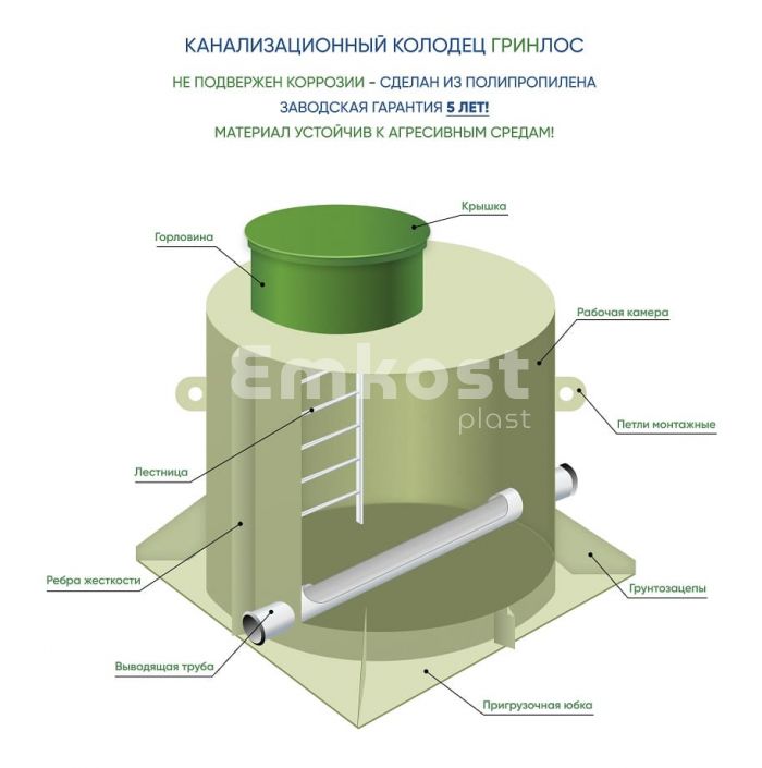 Доставка Канализационный колодец ГРИНЛОС К 1000/1500