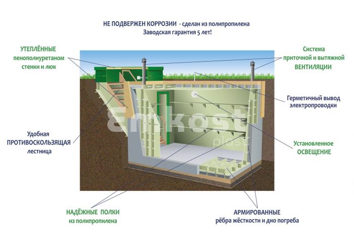 Характеристики Гринлос Погреб ЛКТ 4500*2000*2000