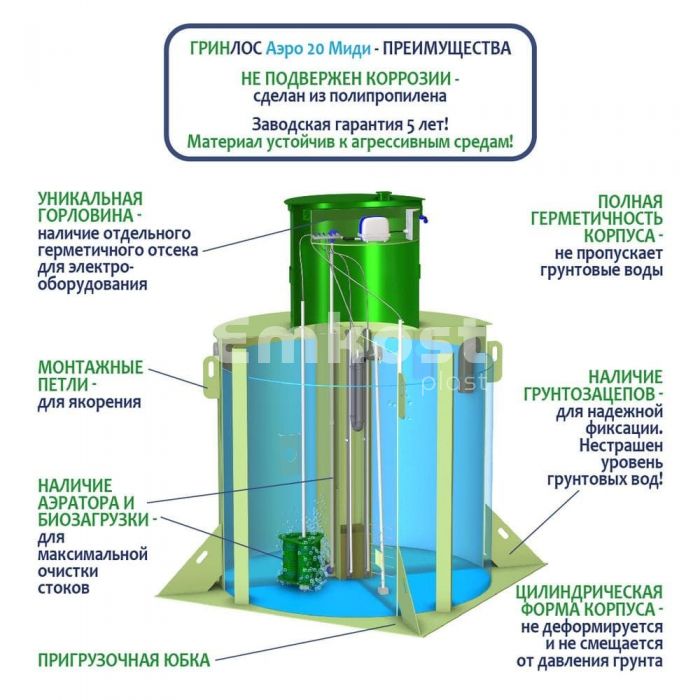 • Септик ГРИНЛОС Аэро 20 Миди