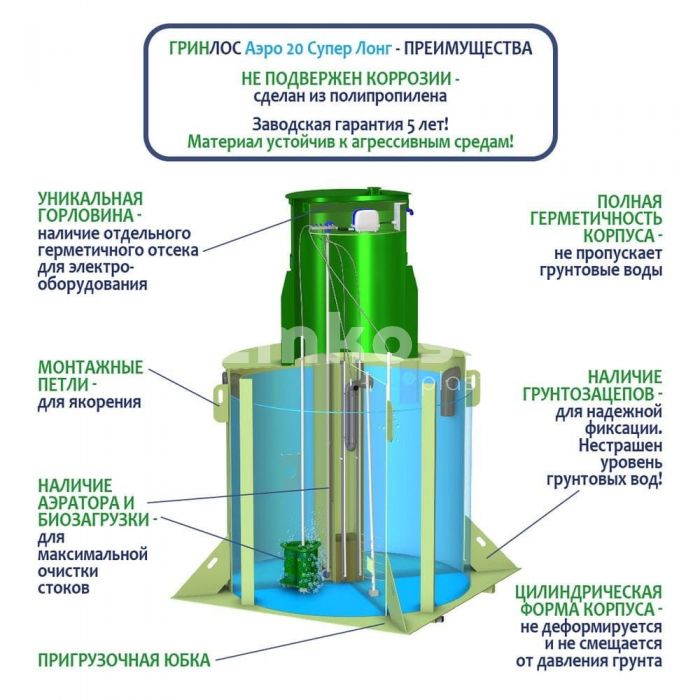 • Септик ГРИНЛОС Аэро 20 Супер Лонг