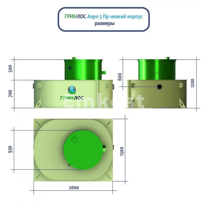 • Септик ГРИНЛОС Аэро 5 низкий корпус Пр