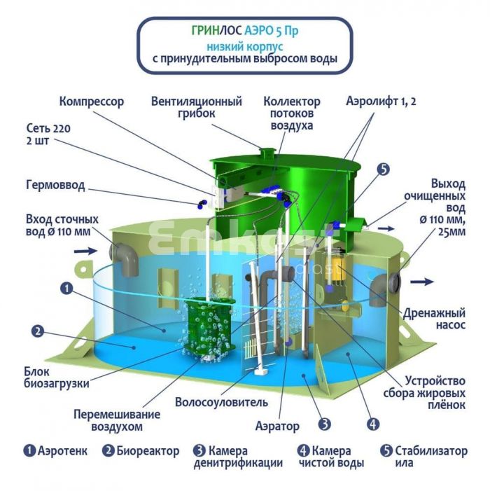 Септик ГРИНЛОС Аэро 5 низкий корпус Пр