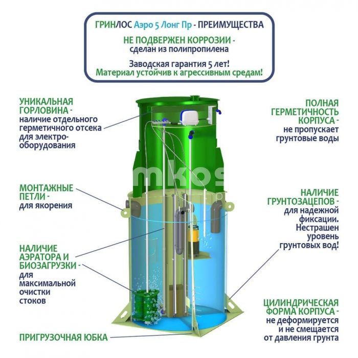 • Септик ГРИНЛОС Аэро 5 Пр Лонг