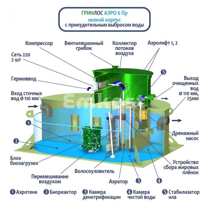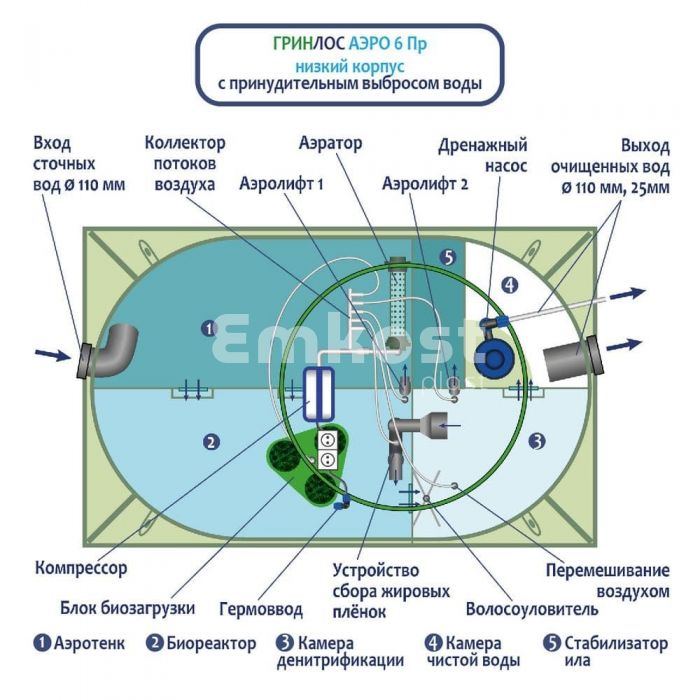 • Септик ГРИНЛОС Аэро 6 низкий корпус Пр