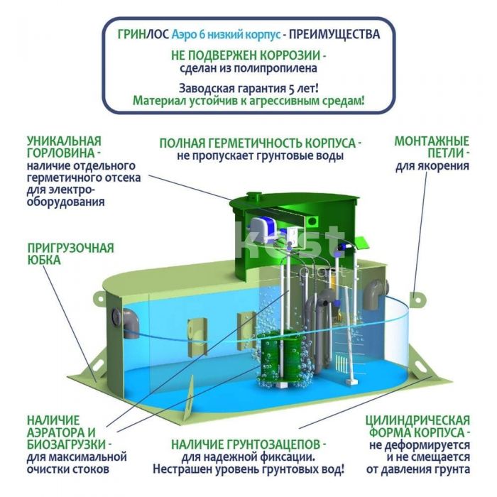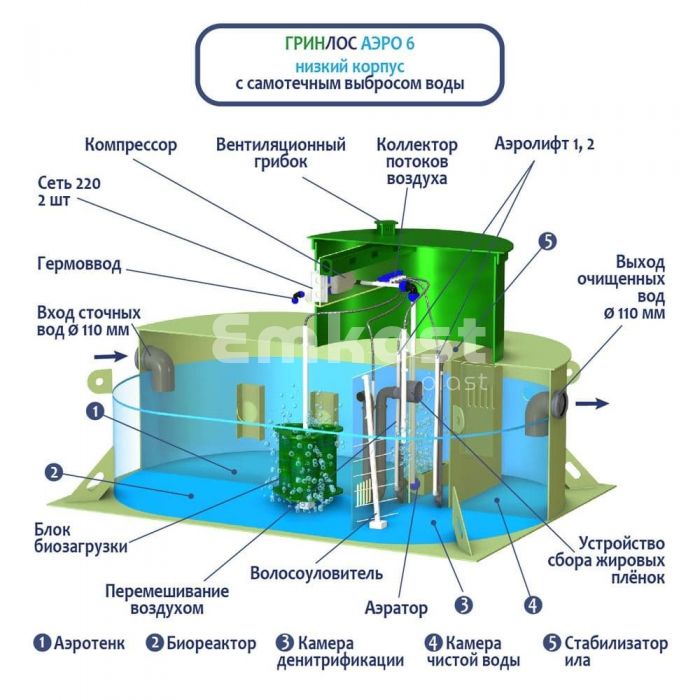 • Септик ГРИНЛОС Аэро 6 низкий корпус