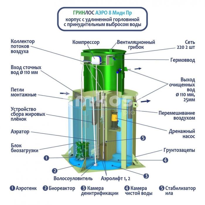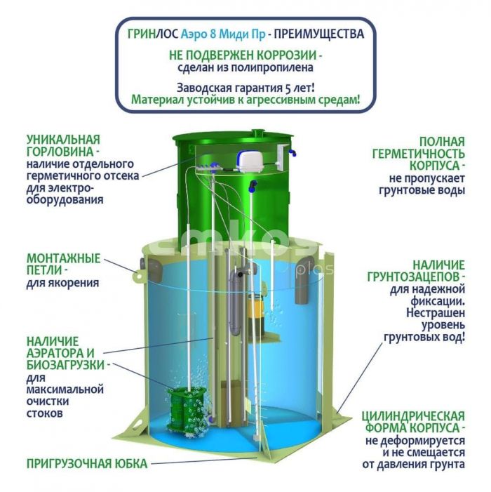 • Септик ГРИНЛОС Аэро 8 Пр Миди