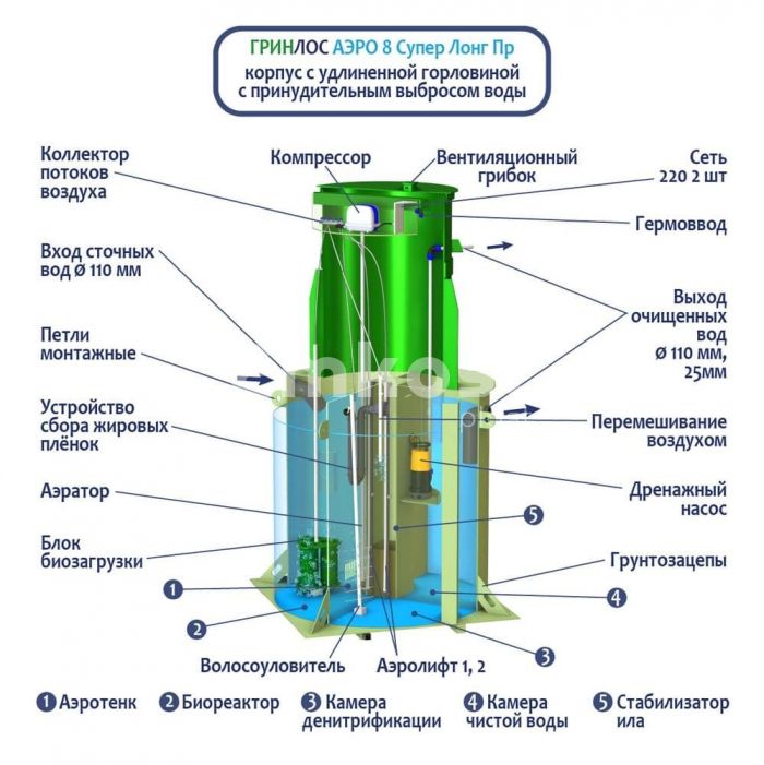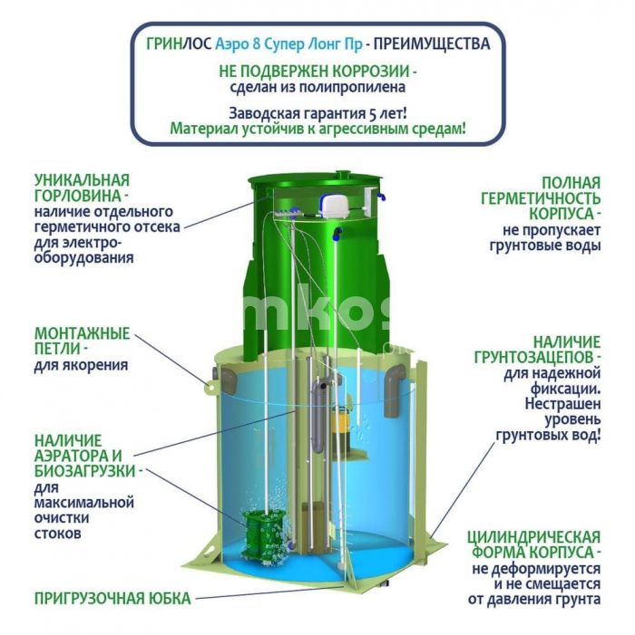 • Септик ГРИНЛОС Аэро 8 Пр Супер Лонг