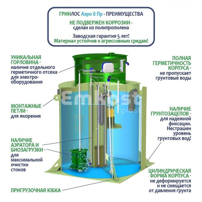 • Септик ГРИНЛОС Аэро 8 Пр