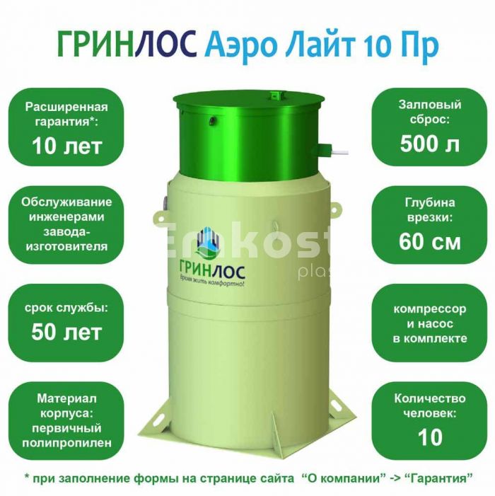 Цена установки Гринлос Аэро Лайт 10 ПР под ключ