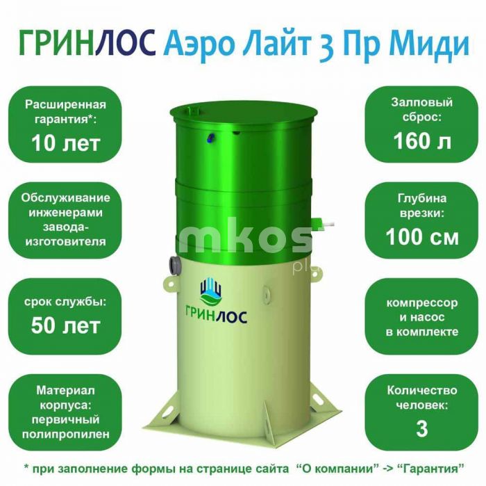 • Септик Гринлос Аэро Лайт 3 Пр Миди