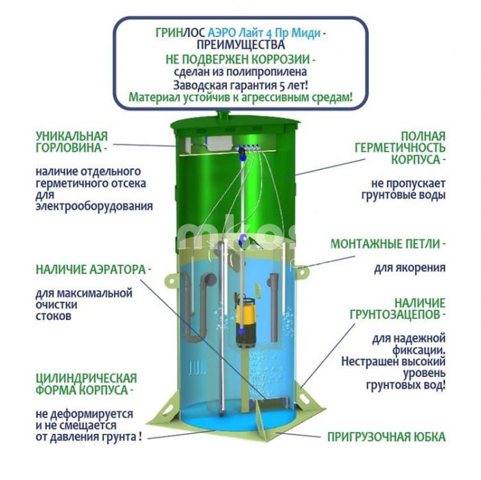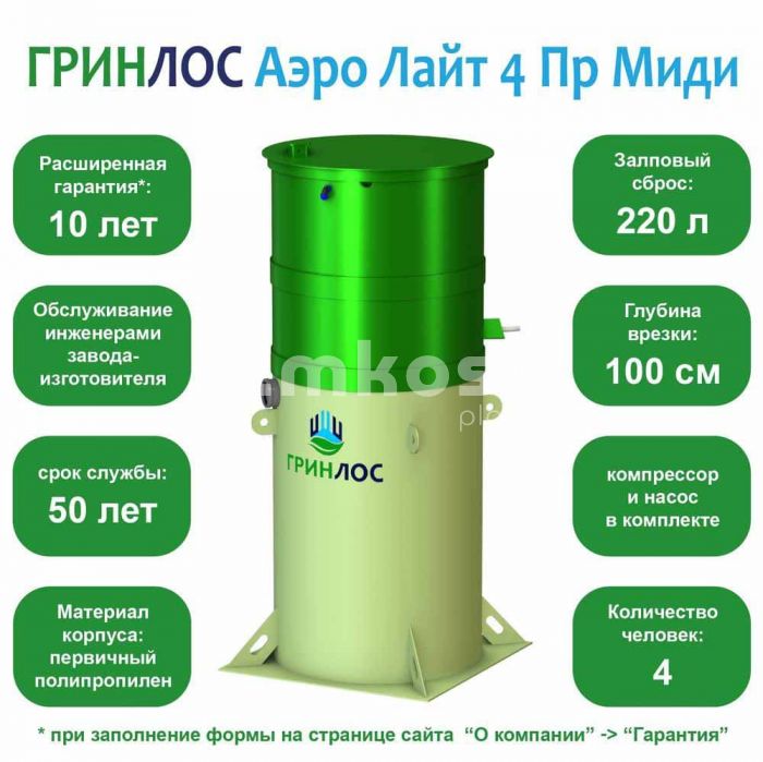 • Септик Гринлос Аэро Лайт 4 Пр Миди