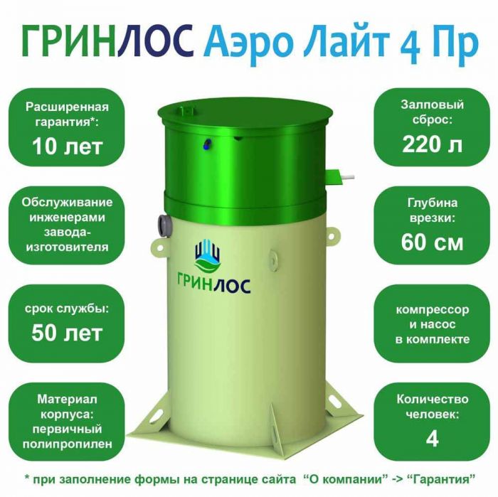 Гринлос Аэро Лайт 4 НК самотечный 1.3х1.2х1.07 - 54 от 130 500 руб.