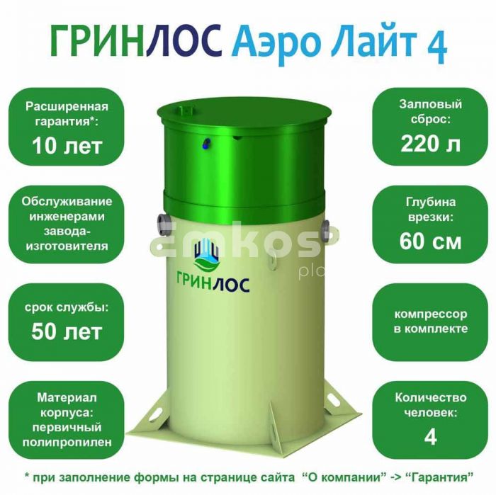 Гринлос Аэро Лайт 4 НК самотечный 1.3х1.2х1.07 - 54 от 143 500 руб.