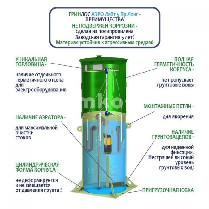 • Септик Гринлос Аэро Лайт 5 Пр Лонг