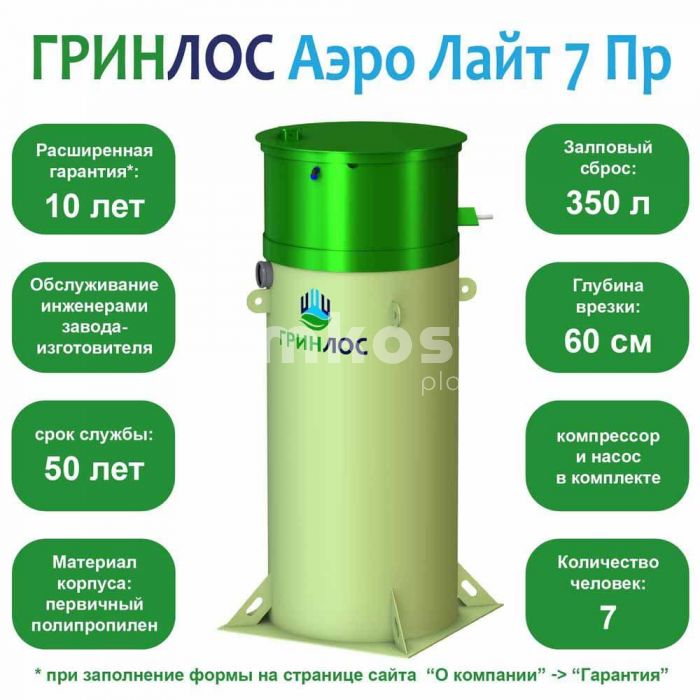 Гринлос Аэро Лайт 7 НК Лонг самотечный 1.6х1.2х1.67 - 82 от 195 000 руб.