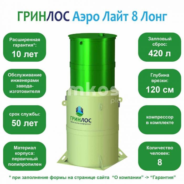 Гринлос Аэро Лайт 8 НК Лонг самотечный 1.7х1.2х1.67 - 83 от 202 500 руб.