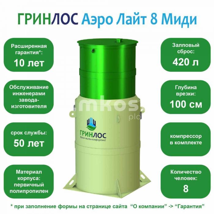 Гринлос Аэро Лайт 8 НК Миди самотечный 1.7х1.2х1.47 - 80 от 194 800 руб.