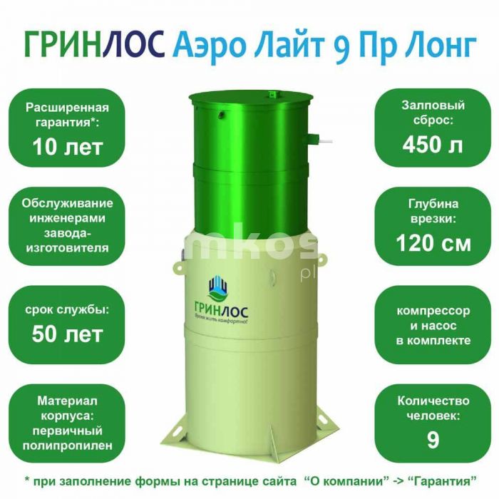 • Септик Гринлос Аэро Лайт 9 ПР Лонг