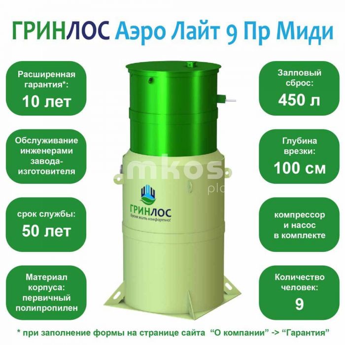 • Септик Гринлос Аэро Лайт 9 Пр Миди