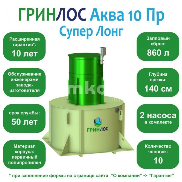ГРИНЛОС Аква 10 Супер Лонг самотечный 2х2х2.5 - 226 от 322 000 руб.