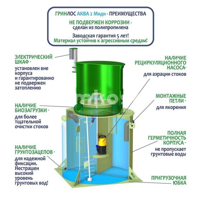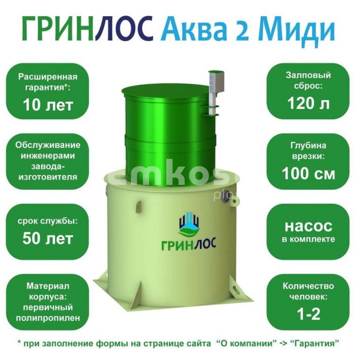 ГРИНЛОС Аква 2 Миди самотечный 1.2х1.2х1.9 - 100 от 171 000 руб.
