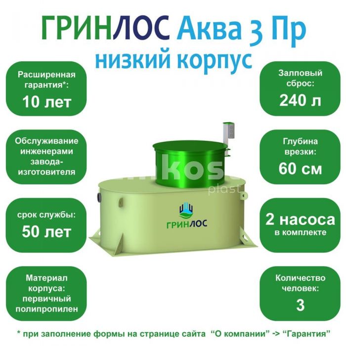 • Септик ГРИНЛОС Аква 3 низкий корпус Пр