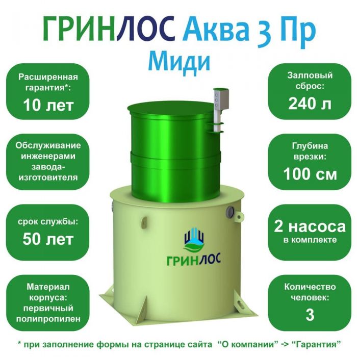 • Септик ГРИНЛОС Аква 3 Пр Миди