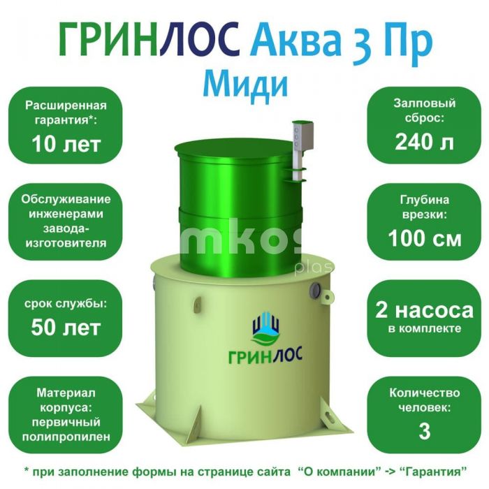 ГРИНЛОС Аква 3 Миди самотечный 1.33х1.33х2.1 - 120 от 179 200 руб.