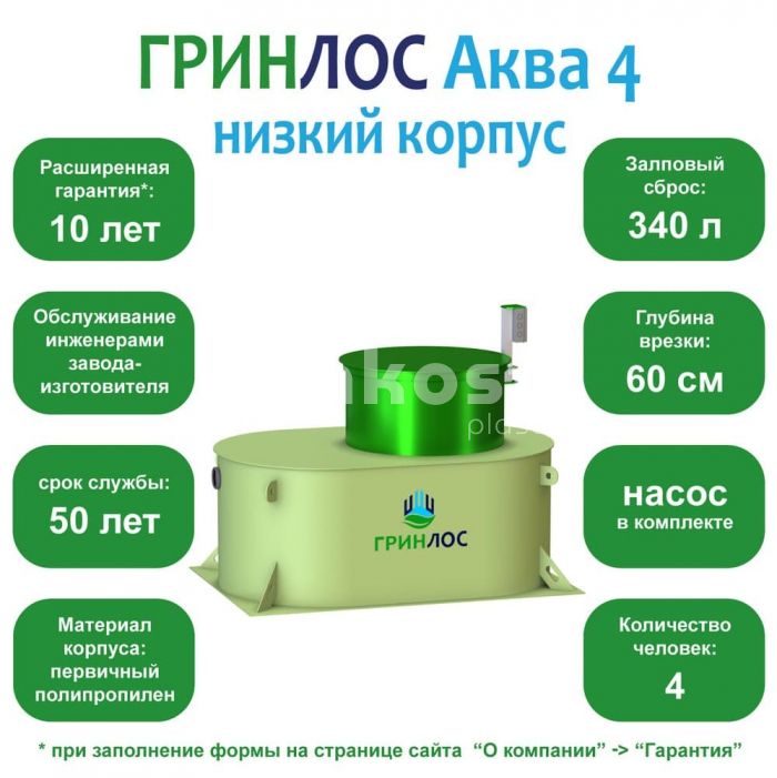 ГРИНЛОС Аква 4 низкий корпус самотечный 2х1.3х1.2 - 112 от 181 500 руб.
