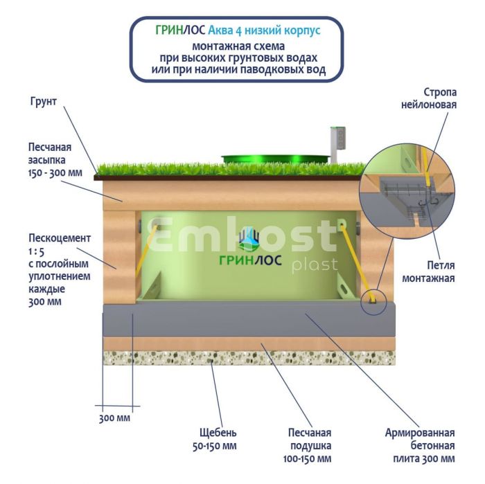 • Септик ГРИНЛОС Аква 4 низкий корпус