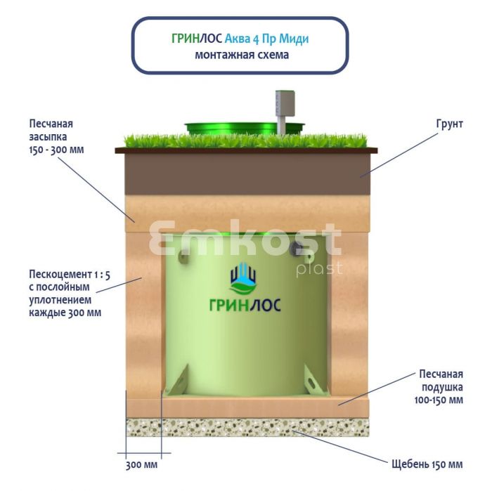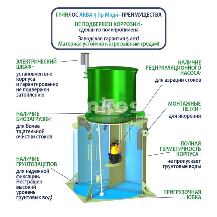 • Септик ГРИНЛОС Аква 4 Пр Миди