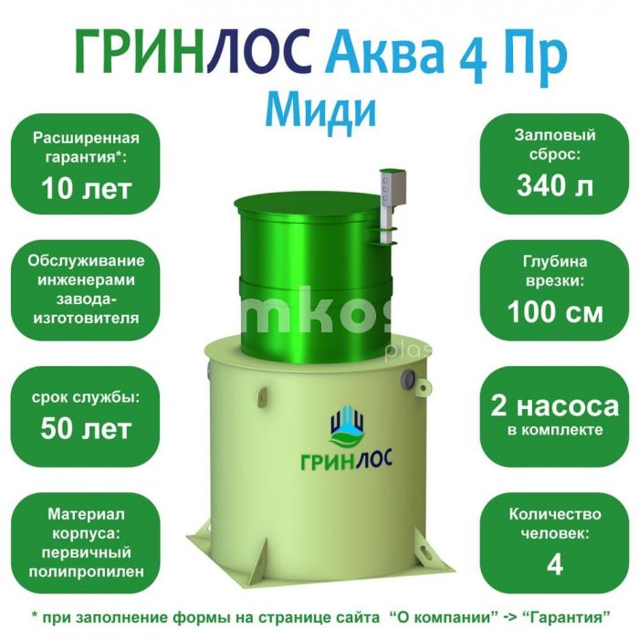 ГРИНЛОС Аква 4 Миди самотечный 1.33х1.33х2.2 - 126 от 194 000 руб.