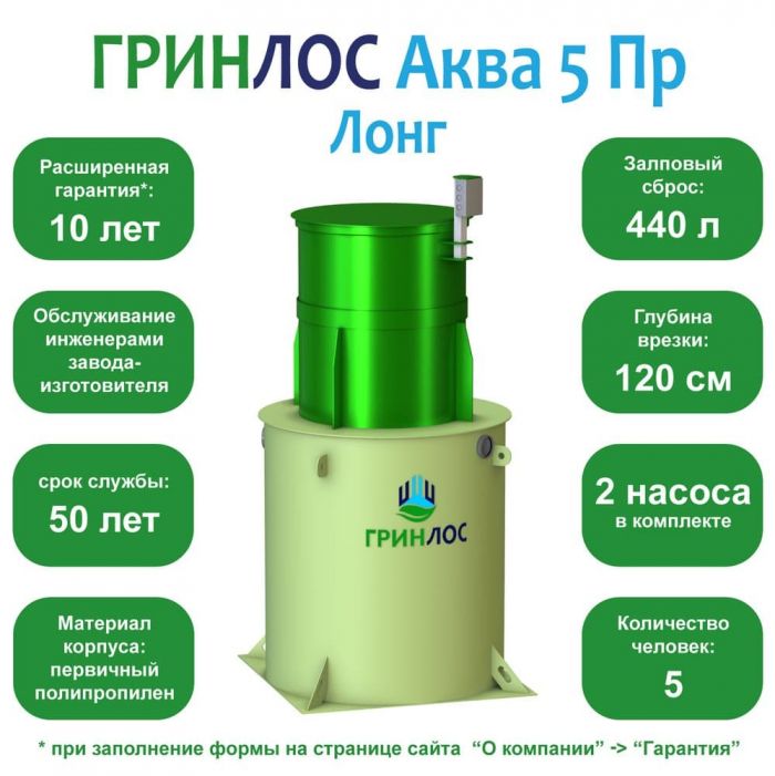 Септик ГРИНЛОС Аква 5 Пр Лонг