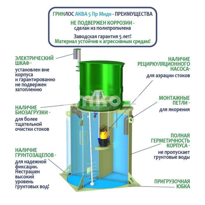 • Септик ГРИНЛОС Аква 5 Пр Миди