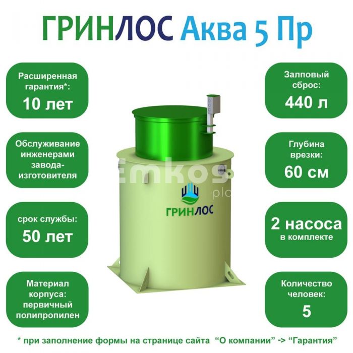 ГРИНЛОС Аква 5 самотечный 1.33х1.33х2 - 121 от 183 500 руб.