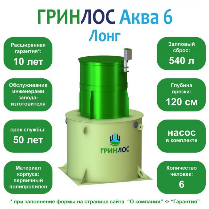 Цена установки ГРИНЛОС Аква 6 Лонг под ключ