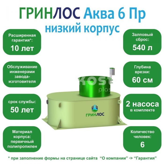 • Септик ГРИНЛОС Аква 6 низкий корпус Пр