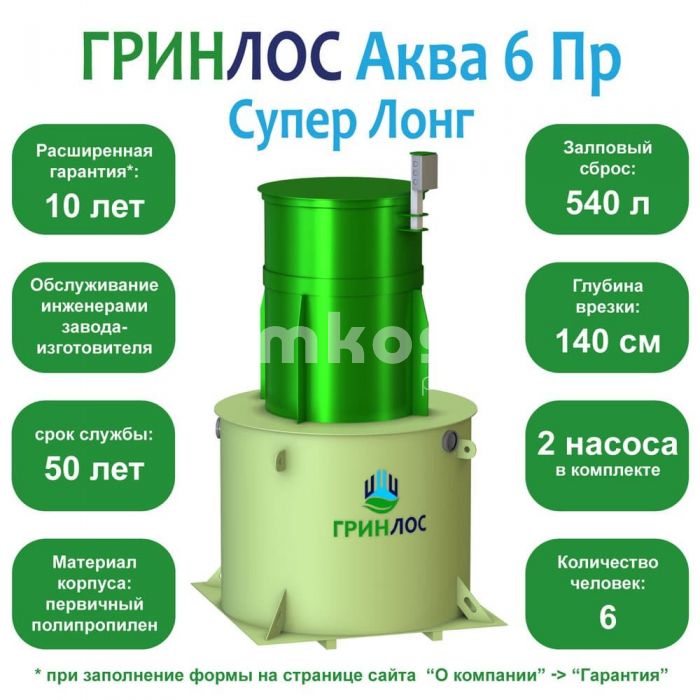 • Септик ГРИНЛОС Аква 6 Пр Супер Лонг