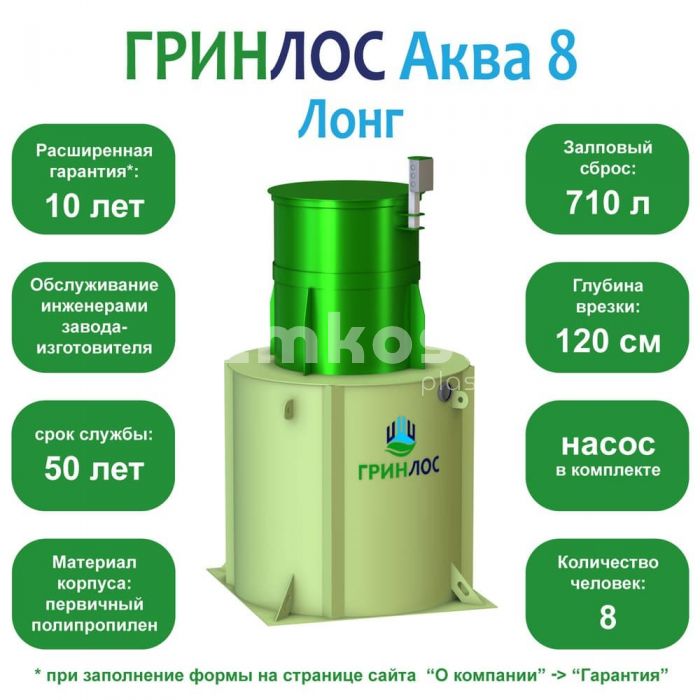 ГРИНЛОС Аква 8 Лонг самотечный 1.5х1.5х2.6 - 180 от 258 000 руб.