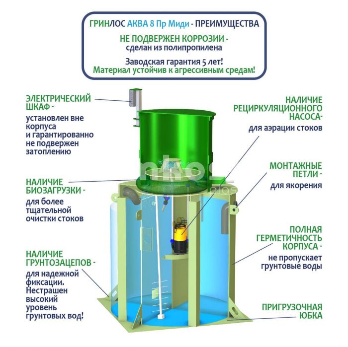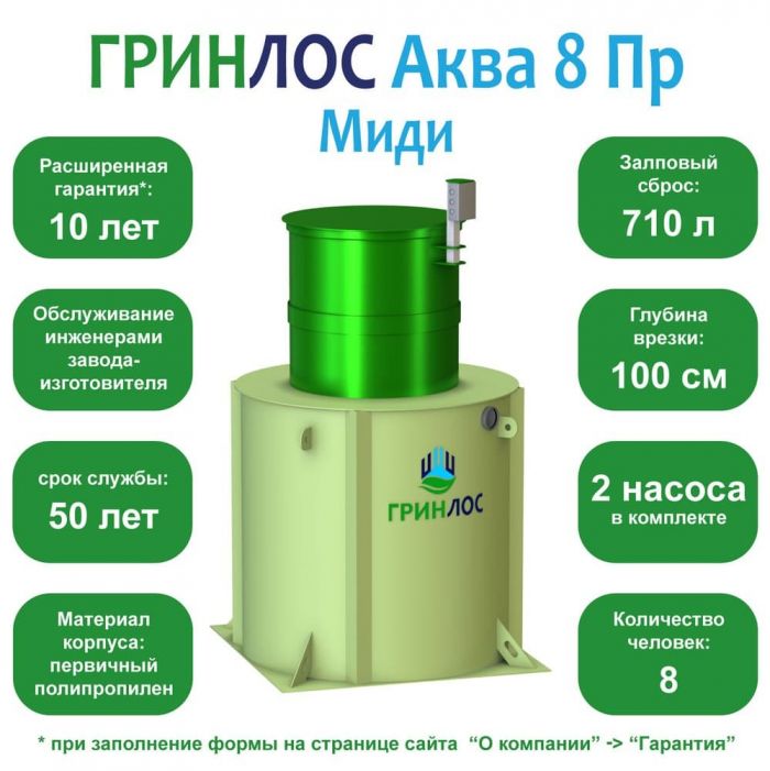 • Септик ГРИНЛОС Аква 8 Пр Миди