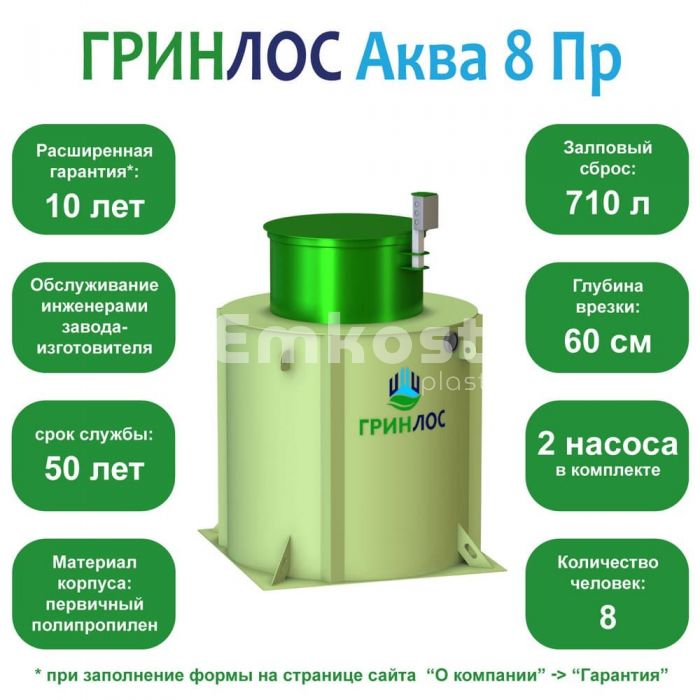 ГРИНЛОС Аква 8 Лонг самотечный 1.5х1.5х2.6 - 180 от 258 000 руб.