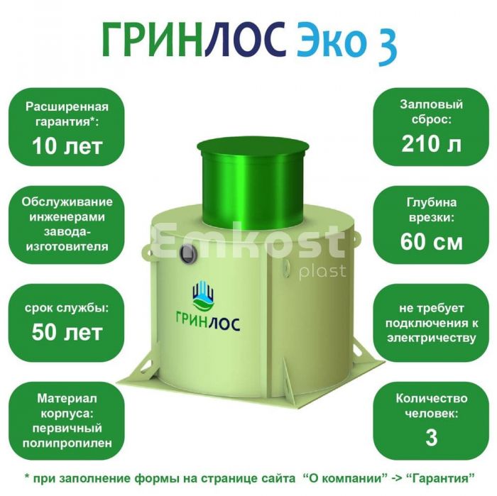 Цена установки ГРИНЛОС Эко 3 под ключ