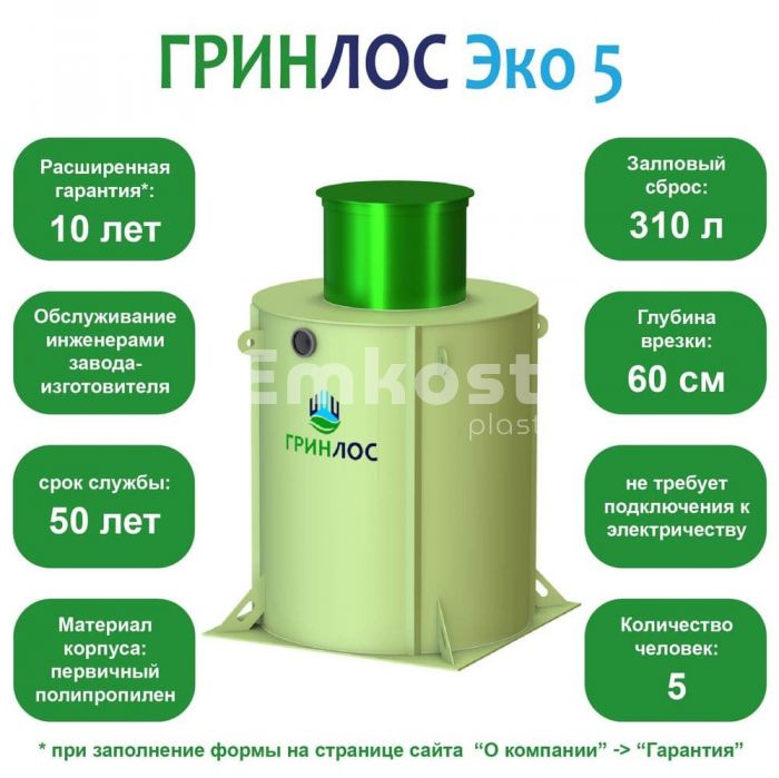 Цена установки ГРИНЛОС Эко 5 под ключ